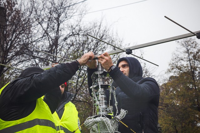 Na vežbi smo koristili i novonabavljeni uređaj koji je sasvim odgovarajući u postavljenoj situaciji (all band/all mode Yaesu FT'991A), kao i stubove i antene koje su izradili polaznici obuke.