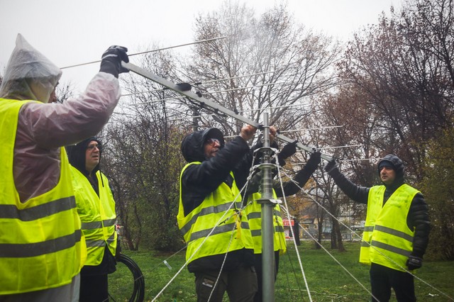 Na vežbi smo koristili i novonabavljeni uređaj koji je sasvim odgovarajući u postavljenoj situaciji (all band/all mode Yaesu FT'991A), kao i stubove i antene koje su izradili polaznici obuke.